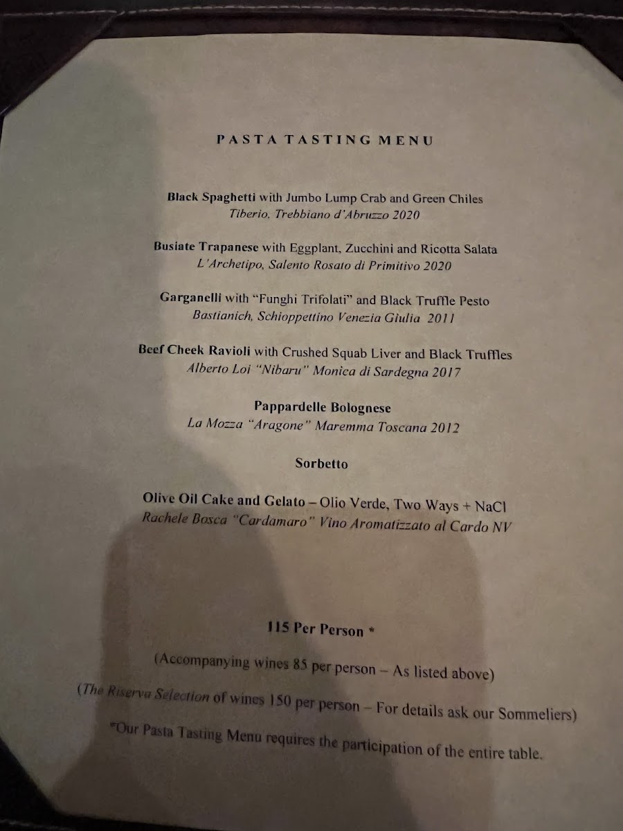 At Babbo, the heart of the experience lies in the thoughtfully curated Pasta Tasting Menu. Among the highlights, the Black Spaghetti with Jumbo Lump Crab and Green Chiles stands out, showcasing succulent crab mingled with the delightful warmth of chiles. Another must-try dish is the Beef Cheek Ravioli with Crushed Squab Liver and Black Truffles, a luxurious combination that invites you to savor each heavenly bite. For pasta lovers looking for a classic, the Pappardelle Bolognese offers a richly textured sauce that clings beautifully to the handmade noodles.